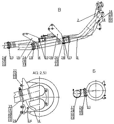 | 3 | Труба задняя левая | 5297-1203011-10 при установке ТКР7Н-2 (см.5297-1203011) |