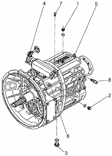 Коробка передач поставляется с сигнальным датчиком нейтральной передачи и заднего хода, и индуктивным датчиком тахографа (6 импульсов за оборот ведомого вала).