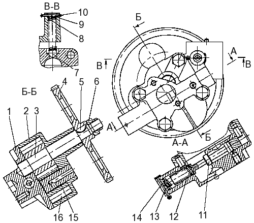 11 — клапан; 13 — пробка; 15 — ось; 16 — ведомое зубчатое