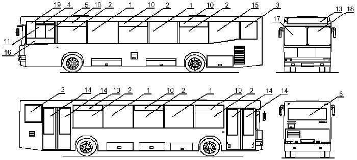 Расположение стекол в автобусах НЕФАЗ 5299-0000010, НЕФАЗ 5299-0000010-15