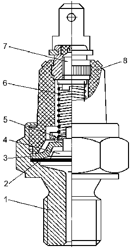 контакт; 6 — пружина; 7 — регулировочный винт; 8 —