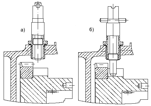 На картере маховика справа предусмотрено место под фиксатор маховика, применяемый для установки угла опережения впрыскивания топлива и регулирования тепловых зазоров в механизме газораспределения. Ручка фиксатора при работе двигателя должна находиться в верхнем положении. В нижнее положение ее переводят при регулировочных работах, в этом случае фиксатор находится в зацеплении с маховиком (см. Рисунок 30 — Положения ручки фиксатора маховика).
