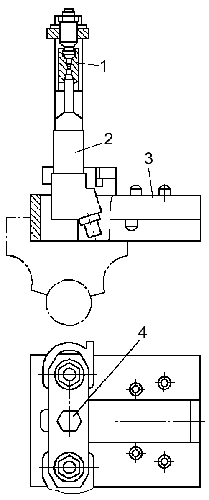 Вворачивая болт 4, отожмите распылитель форсунки упором 1, после этого рожковым ключом отверните гайку распылителя. Вывернув болт 4, извлеките форсунку из приспособления и разберите на части.