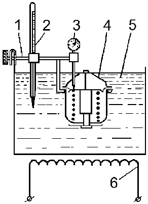 индикатор; 4 — термостат; 5 — ванна с водой; 6 — электронагреватель