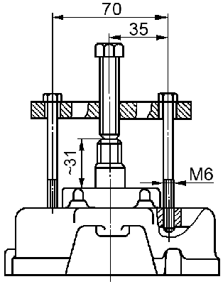 - снять крышку со стороны привода вместе с шариковым подшипником с вала ротора с помощью специального съемника (см. рисунок), используя для этой цели резьбовые отверстия в крышке;