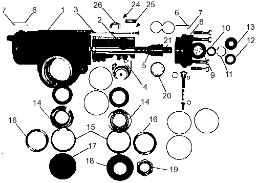 кольцо; 16 — упорная шайба в системе гидроусилителя рулевого привода; 17 —