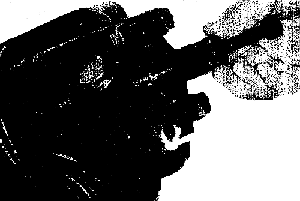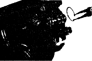 Чтобы отжать штифт ограничителя давления, помощник должен на короткое время запустить двигатель, чтобы создать гидравлическое давление в системе управления. При запуске штифт ограничителя давления «выскочит» из корпуса клапанов, если в это время повернуть влево рулевое колесо или при снятой крестовине входной вал при помощи рукоятки {9.091}. Внимание! В то время, когда «выскочит» штифт, обезопасьте от него людей и оборудование. Для этого подойдет чистая, способная впитывать масло ветошь, обернутая и удерживаемая вокруг штифта. Тотчас же снова выключите двигатель, чтобы не так много вылилось гидравлической жидкости. |