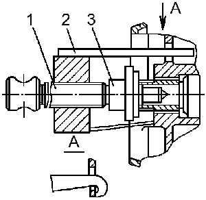 - съемником снять сошку, вворачивая винт 3 (см. Рисунок 158 — Съемник сошки руля) в захват 1 съемника и упираясь наконечником 2 в торец вала сошки (выколачивание сошки может вызвать поломку деталей);