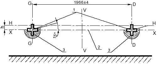 симметрии автобуса; Н-Н — уровень высоты от земли центров фар; Х-Х —