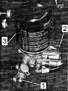 Техническое обслуживание адсорбентного осушителя 3 воздуха (см. рисунок) ф. «Wabco...» заключается в периодической замене фильтрующего элемента по мере его загрязнения (примерно один раз в год).