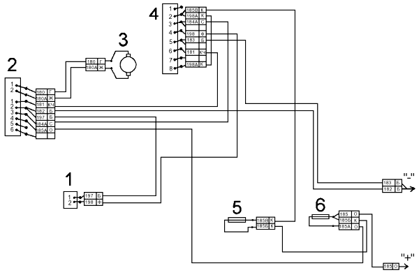 блок управления; 3 — электродвигатель насоса; 4 — таймер; 5, 6 — предохранители